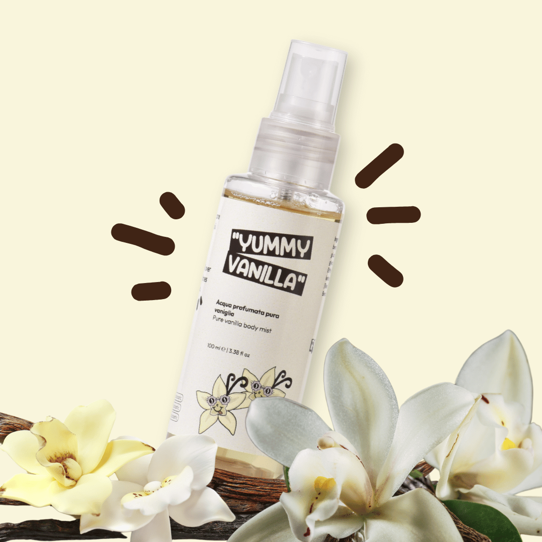 Sono l'acqua profumata che ti farà ricordare il profumo di vaniglia esotica del Madagascar. Il mio aroma è dolce con delicate note speziate, che ti daranno un tocco di classe unico. Sono cosi naturale che puoi spruzzarmi su corpo, viso e capelli, inoltre non macchio i vestiti.